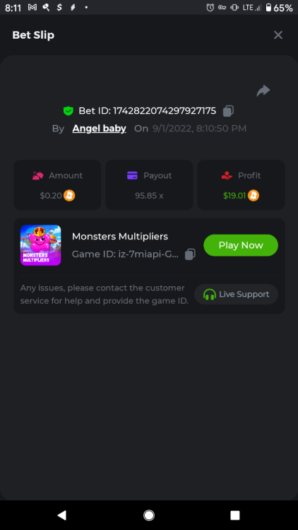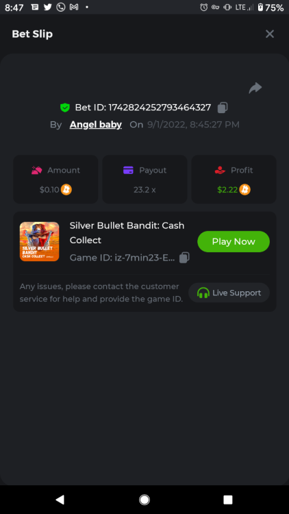 10. https://bc.game/sd/?sd=10JOT8ZLYJ3TAR Not sure why it says amount is .099 my bet is set to 10 cents.