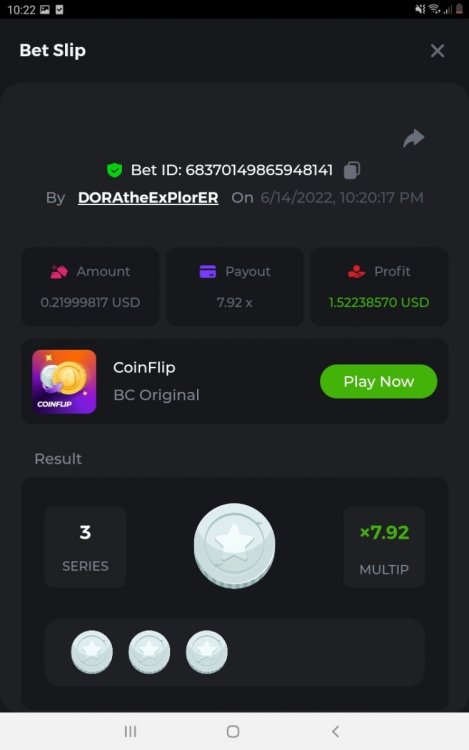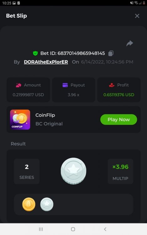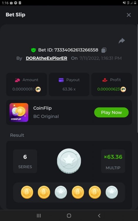 1. https://bc.game/sd/?sd=10OH417UYVAQDV (COINFLIP 6SERIES 63.36x) https://bc.game/sd/?sd=10OH4AT4K3SOPF (WHEEL 49.5x) https://bc.game/sd/?sd=10OH6273YOA4UR (ORIENTAL 42.6) https://bc.game/sd/?sd=10OHAIKMX5UK9F (HiLo 160.7906x)