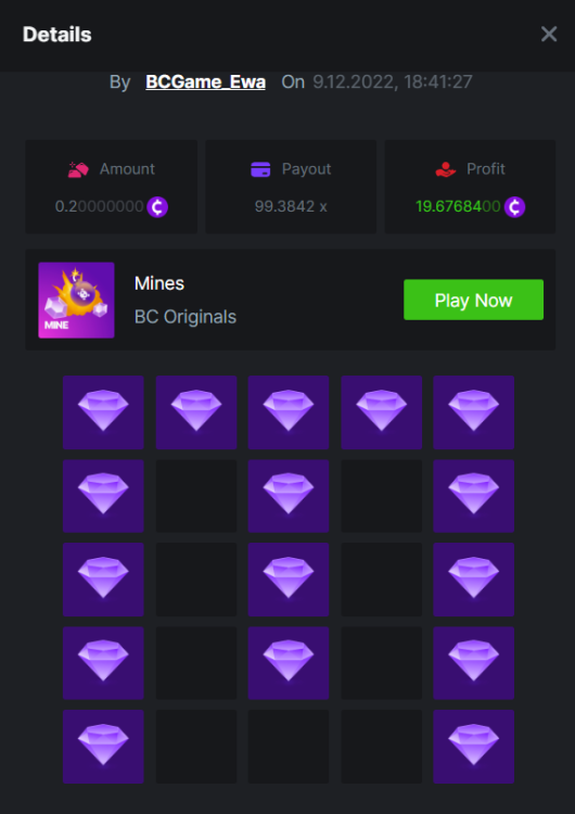 12. $5,000 FIND WANTED LETTERS AND SAVE XMAS – MINES CHALLENGE Starts: 19, December 08:00 am GMT Ends: 26, December 08:00 am GMT Hey Everyone! Christmas is coming and we want to invite you to our Christmas Hunt. Help us save Xmas and take gifts from Santa bag. We are giving away $5,000 in prizes for all qualified participants. So head over to the Mines game page and get started! – (Check all the conditions of participation below). What's the Challenge? Find all letters from word ‚XMAS’ on Mines game using below mentioned settings: for ‘X’ - 9 diamonds 8 mines, payout 83.1985x for ‘M’ - 16 diamonds 4 mines, payout 99.3842x for ‘A’ - 12 diamonds 6 mines, payout 102.1699x for ‘S’ - 9 diamonds 9 mines, payout 176.8013x Only players who post all 4 bets with exact the same settings as on below screenshots will win prizes. How to Enter To enter, copy the link of the bet you'd like to submit. Once you've copied it, paste it as a reply to this thread like so: Link: https://bc.game/#/sd/10YWJXCLX823GZ In the same post, upload a screenshot of your win by clicking the game ID WITH VIEW IN USD mode ENABLED (accessible at the bottom of dropdown menu for your wallet up top. This way, we can ensure that your bet indeed met the minimum requirement at the time of placing it: Link: https://bc.game/#/sd/10YWJXCLX823GZ Link: https://bc.game/#/sd/10YWK6WJG1YFBN Link: https://bc.game/#/sd/10YWLNKDX4QIVN Link: https://bc.game/#/sd/10YWMF6CJCR95F Minimum VIP Minimum VIP 4 Minimum Payouts Need to find all 4 letters with mentioned payouts for each. Minimum Bet Size $0.2 USD equivalent Eligible Coins All cryptocurrencies are eligible (excepting JB) Prize pool & Reward Breakdown Each particpant who find correcly all 4 letters from word 'XMAS' will receive EQUAL reward from prize pool as below: Please combine all of your hits together in a SINGLE post. Edit your existing post for additional hits, don't create a new post. Each eligible entry must have the Bet Slip URL, failure to include it will disqualify participation in the event. Bet Slip image is not mandatory. Bets must be posted within 24 hours of placing bet in order to keep things fair for everyone. Bets must be made during the specified time window stated above. This thread will lock automatically when the time period is over. One (1) entry per household. Anyone found attempting to win multiple prizes will be disqualified from this challenge as well as all future challenges. Failure to follow instructions will result in your submission being null and void. By entering this challenge, you acknowledge that BC.Game has the final decision on results and placement. Payouts will be distributed after the event is finished. Please note that it could take up to 48 hours after the completion of the event. Good luck everyone! Merry Christmas!